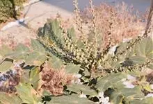 阔叶十大功劳 Carr. )是小檗科,十大功劳属常绿灌木或小乔木,高可达2米。叶长圆形,上面深绿色,叶脉显著,背面淡黄绿色,网脉隆起,小叶无柄,基部一对小叶倒卵状长圆形,总状花序簇生,…全部>>