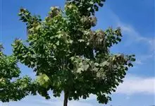 刺楸 Koidz.),五加科刺楸属落叶乔木,高30米。树干通直;树皮纵裂灰黑褐色;叶掌状分裂长圆状卵形;伞形花序,花较小白色或淡黄绿色;果蓝黑色;花期7-8月,果期9-11月。变种有深裂叶刺楸,…全部>>
