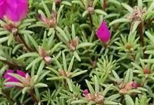大花马齿苋:一年生草本,高10-30厘米。茎平卧或斜升,紫红色,多分枝,节上丛生毛。叶密集枝端,较下的叶不规则互生,叶片细圆柱形,无毛。花单生或数朵簇生枝端,直径2.5-4厘米,…全部>>