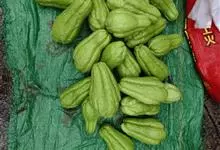 佛手瓜Swartz),又名隼人瓜、安南瓜、寿瓜等,是一种葫芦科佛手瓜属多年生宿根草质藤本植物,因其形如两掌合口有佛教祝福之意,因此多被称为佛手瓜、福寿瓜。植株具块根;叶片膜质,为心状圆形,下面有短柔毛,…全部>>