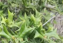 构骨叶冬青学名枸骨,又名猫儿刺、老虎刺、八角刺、鸟不宿、构骨、狗骨刺、猫儿香和老鼠树。常绿灌木或小乔木,高1-3米,二年枝褐色,三年生枝灰白色,叶片厚革质,花淡黄色,果球形,直径8-10毫米,成熟时…全部>>