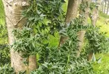 构骨叶冬青学名枸骨,又名猫儿刺、老虎刺、八角刺、鸟不宿、构骨、狗骨刺、猫儿香和老鼠树。常绿灌木或小乔木,高1-3米,二年枝褐色,三年生枝灰白色,叶片厚革质,花淡黄色,果球形,直径8-10毫米,成熟时…全部>>