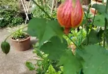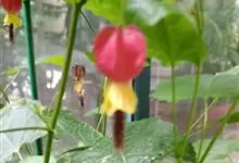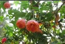 红萼苘麻是锦葵科、苘麻属常绿软木质灌木,叶绿色,长5-10厘米,心形,叶端尖,叶缘有钝锯齿,有时分裂,有细细的叶柄;叶互生,掌状叶脉;花单生于叶腋,具长梗,下垂;花萼红色,半套着大约4厘米长的花瓣,…全部>>