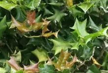 构骨叶冬青学名枸骨,又名猫儿刺、老虎刺、八角刺、鸟不宿、构骨、狗骨刺、猫儿香和老鼠树。常绿灌木或小乔木,高1-3米,二年枝褐色,三年生枝灰白色,叶片厚革质,花淡黄色,果球形,直径8-10毫米,成熟时…全部>>