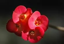 铁海棠为大戟科大戟属蔓生灌木植物;茎多分枝,具纵棱,呈旋转状;叶互生,通常集中于嫩枝上;每个花序基部边缘具微小的红色尖头;苞叶先端圆且具小尖头,无柄,上面鲜红色,下面淡红色;苞片丝状;子房光滑无毛,…全部>>