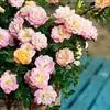 丰花月季是蔷薇科、蔷薇属植物。灌木,高0.9-1.3米,小枝具钩刺或无刺、无毛,羽状复叶,小叶5-7片,宽卵形或卵状长圆形,长2.3-6.0厘米,先端渐尖,基部近圆形或宽楔形。具尖锯齿,无毛。…全部>>
