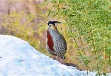 红腹角雉属于鸡形目雉科,雄鸟体羽及两翅主要为深栗红色,满布具黑缘的灰色眼状斑,下体灰斑大而色浅。雌鸟上体灰褐色,下体淡黄色,杂以黑、棕、白斑。全部>>