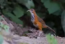 斑胸钩嘴鹛是雀形目、画眉科、钩嘴鹛属的鸟类。体型略大的钩嘴鹛。无浅色眉纹,脸颊棕色。甚似锈脸钩嘴鹛但胸部具浓密的黑色点斑或纵纹。栖息于低山地区及平原的林地灌丛间,在林间作短距离飞翔。…全部>>