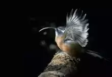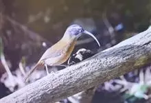 剑嘴鹛:中型鸟类,体长21-22厘米。嘴特别细长而向下弯曲,头顶和头侧烟灰色具长而窄的白色眉纹,在暗色的头上极为醒目,其余上体棕褐色或褐色。颏、喉白色杂有灰色条纹,其余下体锈红色。…全部>>