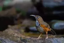 斑胸钩嘴鹛是雀形目、画眉科、钩嘴鹛属的鸟类。体型略大的钩嘴鹛。无浅色眉纹,脸颊棕色。甚似锈脸钩嘴鹛但胸部具浓密的黑色点斑或纵纹。栖息于低山地区及平原的林地灌丛间,在林间作短距离飞翔。…全部>>