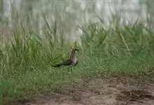 燕鸻pratincole,亦作swallow plover。燕鸻科燕鸻亚科6~7种旧大陆海滨鸟类。体长约20公分,体褐色,腰白色;叉尾,翅长而尖。晨昏飞行在河流、湖泊上空捕食昆虫。…全部>>