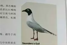 黑嘴鸥 中型水鸟,体长31~39厘米。嘴黑色,脚红色。夏羽头黑色,眼上和眼 下具白色星月形斑,在黑色的头上极为醒目。颈、腰、尾上覆羽、尾和下体白色。初级飞羽末端具黑色斑点。翼下仅部分初级飞羽黑色,与…全部>>