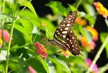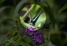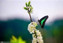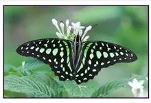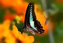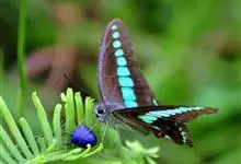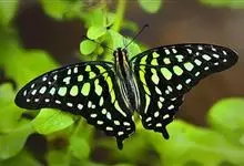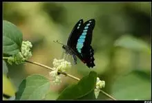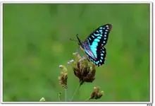 青带凤蝶Graphium sarpedon ,又名青凤蝶,是最普遍的中型凤蝶,飞行速度很快。青带凤蝶的翅膀中央有许多浅蓝色的斑点,很整齐地排列成一条直线。这些斑点由上而下逐渐变大,就像一条青色的带子。全部>>