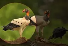 王鹫:是美洲鹫科、王鹫属大型食腐鸟类。体型很大,体长约78厘米。头部裸露,色彩极鲜艳醒目。嗉囊发达。尾短。它的头部及颈部没有羽毛,皮肤颜色有异,包括黄色、橙色、蓝色、紫色及红色。…全部>>