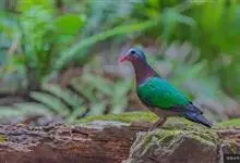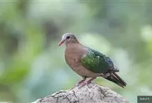 绿背金鸠体长约25厘米,是中等体型、尾甚短的地栖型斑鸠。下体粉红,头顶灰色,额白,腰灰,两翼具亮绿色。雌鸟头顶无灰色。飞行时背部两道黑色和白色的横纹清晰可见。主要栖息于2000米以下的山地森林中,…全部>>