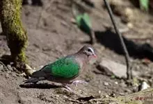 绿背金鸠体长约25厘米,是中等体型、尾甚短的地栖型斑鸠。下体粉红,头顶灰色,额白,腰灰,两翼具亮绿色。雌鸟头顶无灰色。飞行时背部两道黑色和白色的横纹清晰可见。主要栖息于2000米以下的山地森林中,…全部>>