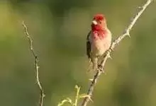酒红朱雀小型鸟类,体长13~15厘米。雄鸟通体深红色,头部深朱红或棕红色,下背和腰玫瑰红色,眉纹粉红色而具丝绢光泽。两翅和尾黑褐或灰褐色、具暗红色狭缘,内侧两枚三级飞羽具淡粉红色先端。…全部>>