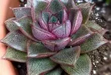 紫珍珠是景天科石莲花属的多年生肉质草本植物。植株中小型;叶片肉质,匙形,呈莲座状紧密排列;叶片粉紫色,叶缘呈粉白色,光照充足时颜色亮丽,不足时叶色会呈现深绿色或灰绿色,叶面光滑,被轻微白粉,…全部>>