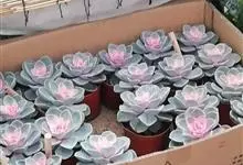 紫珍珠是景天科石莲花属的多年生肉质草本植物。植株中小型;叶片肉质,匙形,呈莲座状紧密排列;叶片粉紫色,叶缘呈粉白色,光照充足时颜色亮丽,不足时叶色会呈现深绿色或灰绿色,叶面光滑,被轻微白粉,…全部>>