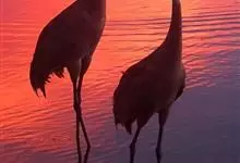 丹顶鹤:是鹤科、鹤属的一种大型涉禽,体长120-160厘米。颈、脚较长,通体大多白色,头顶鲜红色,喉和颈黑色,耳至头枕白色,脚黑色,站立时颈、尾部飞羽和脚黑色,头顶红色,…全部>>