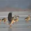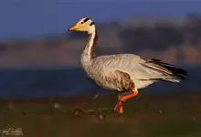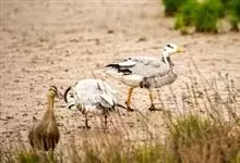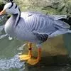 斑头雁是雁形目鸭科雁属鸟类,又称白头雁、黑纹头雁。通体大都灰褐色,头和颈侧白色,头顶有两道黑色带斑;虹膜暗棕色,嘴橙黄色,嘴甲黑色,脚和趾橙黄色;背部淡灰褐色,羽端缀有棕色,形成鳞状斑;颏、喉污白色,…全部>>