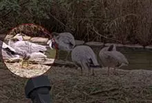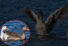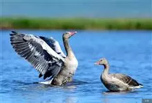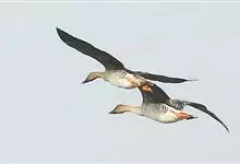 灰雁:体长70-90厘米,翼展147-182厘米,体重2.5-4千克,寿命17年。体大而肥胖。嘴、脚肉色,上体灰褐色,下体污白色,飞行时双翼拍打用力,振翅频率高。脖子较长。腿位于身体的中心支点,…全部>>