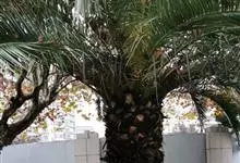 加那利海枣是棕榈科刺葵属植物,单干直立,自然高度可达18米,干径50-90厘米,幼时被以枯叶,老树则叶柄基部残存。具波状叶痕,羽状复叶,顶生丛出。雌雄异株,肉穗花序自叶间抽出,长可达2米。浆果,…全部>>
