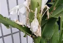 姜花又名野姜花。是姜科姜花属的多年生草本植物,茎高1-2米;叶片长圆状披针形或披针形,叶面光滑,叶背被短柔毛;穗状花序顶生,椭圆形,花芬芳,白色;蒴果卵状三棱形,微黄绿色;种子鲜红色,具橘红色的假种皮。…全部>>