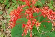 赪桐 Sweet)是唇形科、大青属灌木,高1-4米,叶片圆心形,顶端尖或渐尖,基部心形,边缘有疏短尖齿,表面疏生伏毛,二歧聚伞花序组成顶生,大而开展的圆锥花序,花序的最后侧枝呈总状花序,花萼红色,…全部>>