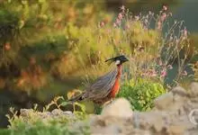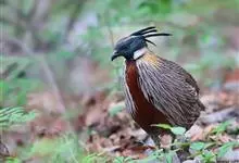 红腹角雉属于鸡形目雉科,雄鸟体羽及两翅主要为深栗红色,满布具黑缘的灰色眼状斑,下体灰斑大而色浅。雌鸟上体灰褐色,下体淡黄色,杂以黑、棕、白斑。全部>>