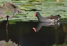 黑水鸡:是鹤形目、秧鸡科的鸟类,共有12个亚种。中型涉禽,体长24-35厘米。嘴长度适中,鼻孔狭长;头具额甲,后缘圆钝;嘴和额甲色彩鲜艳。翅圆形,第2枚初级飞羽最长,或第2枚和第3枚初级飞羽等长,…全部>>