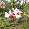 夹竹桃,又名红花夹竹桃、欧洲夹竹桃,是夹竹桃科夹竹桃属的一种常绿直立大灌木,枝条灰绿色,含水液。叶披针形,3叶轮生。聚伞花序顶生,花冠粉红至深红色,花冠漏斗状,有特殊香味。蓇葖果,圆柱形。种子长圆形,…全部>>