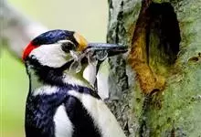 大斑啄木鸟隶属鸟纲鴷形目啄木鸟科。雄鸟头顶黑色,枕部红色,眼先、颊部和耳羽白色,颈部污白色,下嘴基部至后颈有1道黑色条纹并与从颈侧延伸到胸侧的黑色条带相连,背和两翼黑色,肩部具1个大的白色斑块,…全部>>