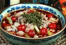 馋嘴跳跳蛙是以牛蛙、青笋、鸡腿菇为主要材料制作的一道渝派川菜。 蛙仔鲜滑细嫩,配以青花椒、干辣椒和重庆农家用山泉泡制的青泡椒、泡姜等二十多种调料烹制而成,麻辣烫嫩,鲜香适口。馋嘴跳跳蛙麻辣味正,肉质…全部>>