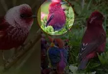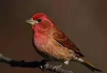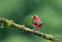 酒红朱雀小型鸟类,体长13~15厘米。雄鸟通体深红色,头部深朱红或棕红色,下背和腰玫瑰红色,眉纹粉红色而具丝绢光泽。两翅和尾黑褐或灰褐色、具暗红色狭缘,内侧两枚三级飞羽具淡粉红色先端。…全部>>