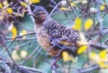 大噪鹛:中型鸟类,体长32-36厘米。额至头顶黑褐色,背栗褐色满杂以白色斑点,斑点前缘或四周还围有黑色。初级覆羽、大覆羽和初级飞羽具白色端斑。尾特长,均具黑色亚端斑和白色端斑。颏、喉棕褐色,…全部>>