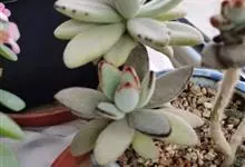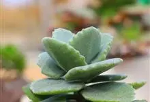 褐斑伽蓝是景天科伽蓝菜属的多年生多肉类植物,茎直立,多分枝,叶生于枝上,肉质叶片匙形,上面密被白色绒毛,下部全缘,叶缘上部有缺刻,缺刻处有深褐或棕色斑块。褐斑伽蓝原产非洲的马达加斯加岛。…全部>>