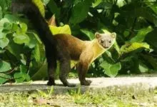 黄喉貂,是食肉目鼬科陆栖食肉类动物,又名青鼬、密狗、黄猺。体长小而轻;吻尖耳大;四肢短;爪发达;尾圆柱状;冬季毛被色泽鲜艳,吻端至颈背部黑褐色,下颏白色并向后延伸至耳下,…全部>>