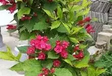 红王子锦带花是忍冬科锦带花属的落叶开张性灌木。株高1 -2米;嫩枝淡红色,老枝灰褐色;单叶对生,呈椭圆形,先端渐尖,叶缘有锯齿,红枝及叶脉具柔毛;花冠漏斗状钟形,花冠筒中部以下变细,聚伞花序,…全部>>