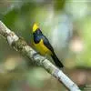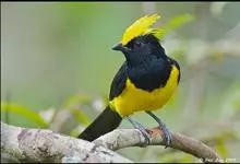 冕雀:共有4个亚种。体长20-21厘米,体重34-49克。具蓬松的黄色长型冠羽。雌鸟似雄鸟,但喉及胸深橄榄黄色,上体沾橄榄色。不会被误认的体大的黄色及黑色山雀。混群栖于原始林及次生林的林冠层,…全部>>