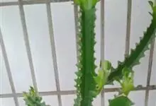 霸王鞭,是大戟科大戟属的多年生肉质灌木,全株含白色乳汁;茎直立,茎基部圆柱形,上部4~5纵棱,边缘波状,外面深绿色;叶互生,上部叶密集,近于簇生,具短柄,其基部有利刺1对;叶片披针形,先端圆,…全部>>