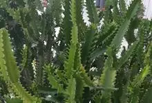 霸王鞭,是大戟科大戟属的多年生肉质灌木,全株含白色乳汁;茎直立,茎基部圆柱形,上部4~5纵棱,边缘波状,外面深绿色;叶互生,上部叶密集,近于簇生,具短柄,其基部有利刺1对;叶片披针形,先端圆,…全部>>