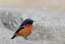 蓝额红尾鸲体长14-16厘米。雄鸟夏羽前额和一短眉纹辉蓝色,头顶、头侧、后颈、颈侧、背、肩、两翅小覆羽和中覆羽以及颏、喉和上胸概为黑色具蓝色金属光泽。主要以甲虫、蝗虫、毛虫、蚂蚁、鳞翅目幼虫等昆虫为食,…全部>>