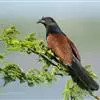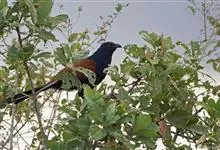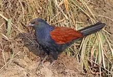 褐翅鸦鹃,是鹃形目鸦鹃科鸦鹃属的鸟类。褐翅鸦鹃的身体为黑色;头颈和胸带蓝紫色金属光泽并具黑亮的羽干纹,下胸至腹部泛金属绿光泽;两翼和肩部为棕栗色,外侧飞羽具暗色羽端,尾羽闪铜绿色光泽;虹膜赤红色,…全部>>