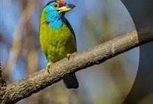 金喉拟啄木鸟,是须鴷科、拟啄木鸟属的鸟类。金喉拟啄木鸟为小型鸟类,体长19-24厘米。额深红色,头顶金黄色,后枕具一大块深红色斑,耳羽和头侧银灰色,上体草绿色,颏和上喉金黄色,下喉淡银灰色,…全部>>