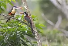 黑眉拟啄木鸟,为须䴕科、拟啄木鸟属的小型鸟类,体长20-25厘米,外形和金喉拟啄木鸟非常相似,但具粗著的黑色眉纹,头侧和耳覆羽以及下喉蓝色而不为银灰色,前颈两侧各有一块鲜红色斑。全部>>