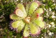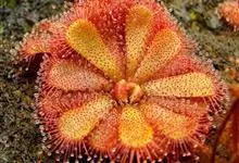 茅膏菜茅膏菜科茅膏菜属多年生草本植物,高32厘米。鳞茎状球茎紫色地上常直无毛,茎顶多分枝;基生叶密集成近一轮,叶片半月形;聚伞花序生于枝顶,白色或红色,种子椭圆形;花果期6-9月。茅膏菜为变种,…全部>>