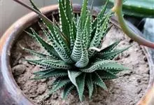 条纹十二卷锦百合科十二卷属。叶片紧密轮生在茎轴上,呈莲座状;叶三角状披针形,先端锐尖;叶表光滑,深绿色;叶背绿色,具较大的白色瘤状突起,这些突起排列成横条纹,…全部>>