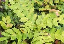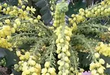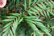 十大功劳 Fedde),小檗科十大功劳属常绿灌木植物。叶子较大且较多,呈椭圆形,绿色,表面光滑无毛,叶柄较长;花朵较小,呈多边形,黄色,花瓣对称分布,表面有绒毛;果实呈圆形,褐色,…全部>>