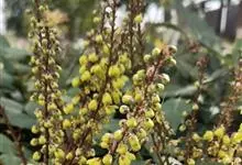 阔叶十大功劳 Carr. )是小檗科,十大功劳属常绿灌木或小乔木,高可达2米。叶长圆形,上面深绿色,叶脉显著,背面淡黄绿色,网脉隆起,小叶无柄,基部一对小叶倒卵状长圆形,总状花序簇生,…全部>>